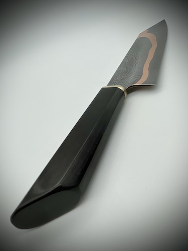 - Manche octogonal wa (montage sur soie) en ébène et bronze martelé